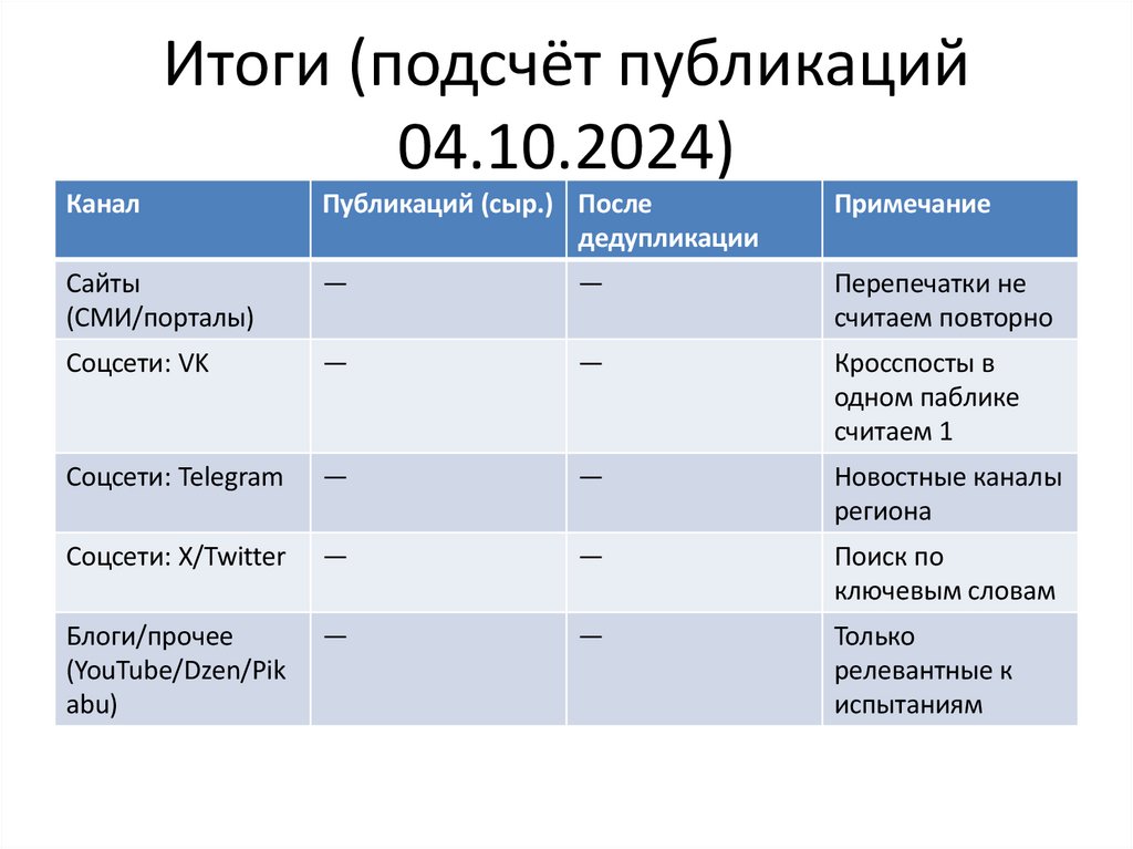 – Топ-5 постов соцсетей (канал/паблик → ссылка)