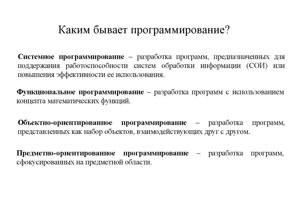 Каким бывает программирование?Системное программирование – разработка программ, предназначенных для