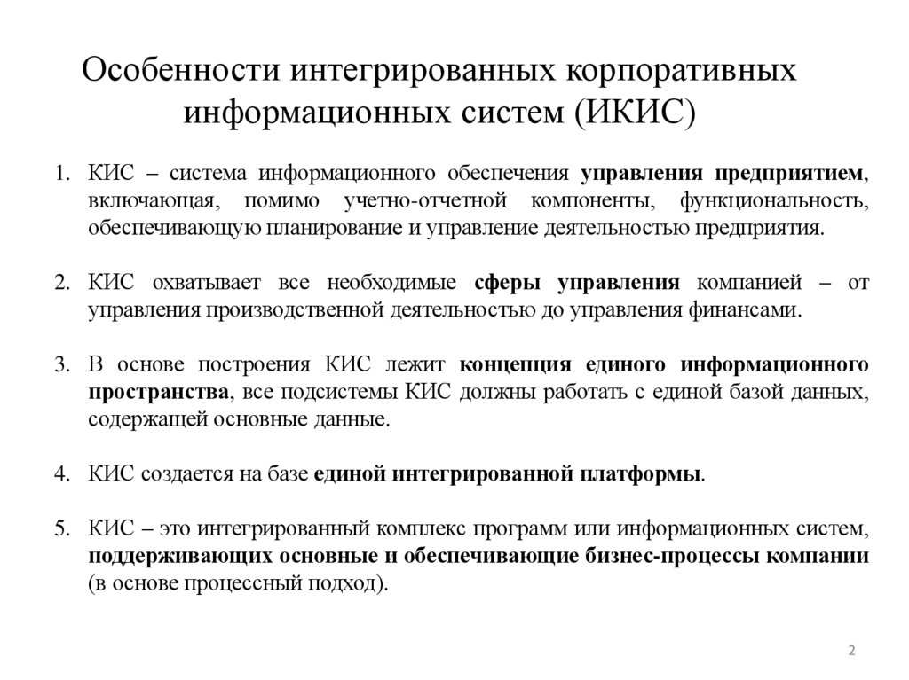 Особенности интегрированных корпоративныхинформационных систем (ИКИС)
