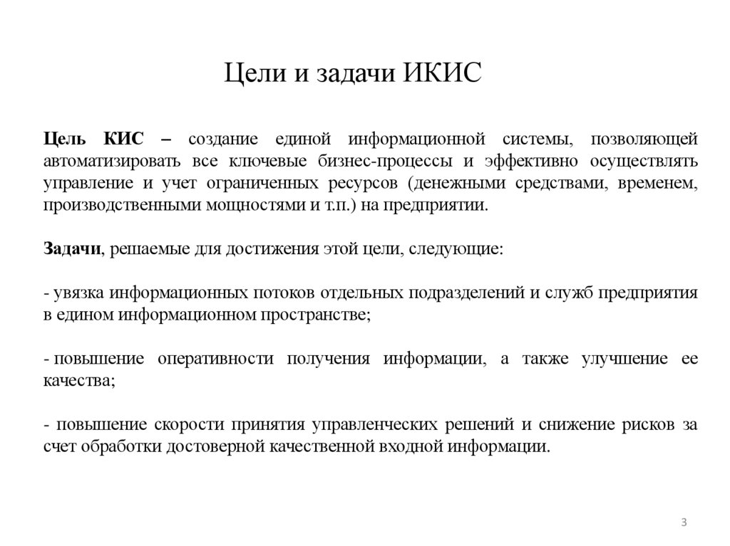 Цели и задачи ИКИСЦель КИС – создание единой информационной системы, позволяющей