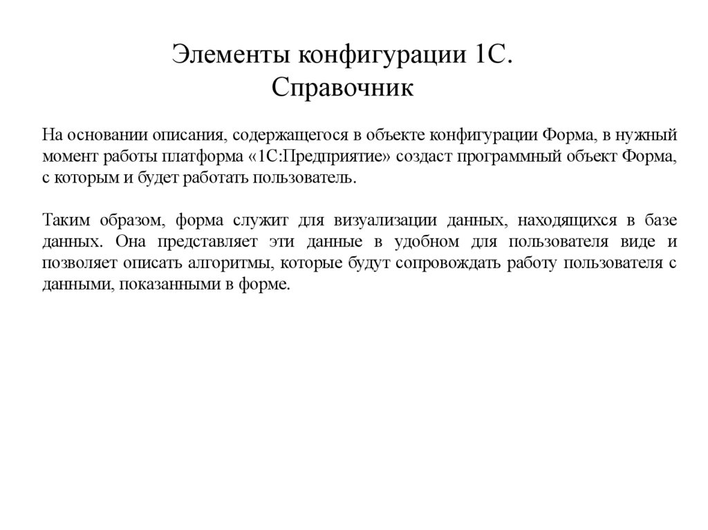 момент работы платформа «1С:Предприятие» создаст программный объект Форма,