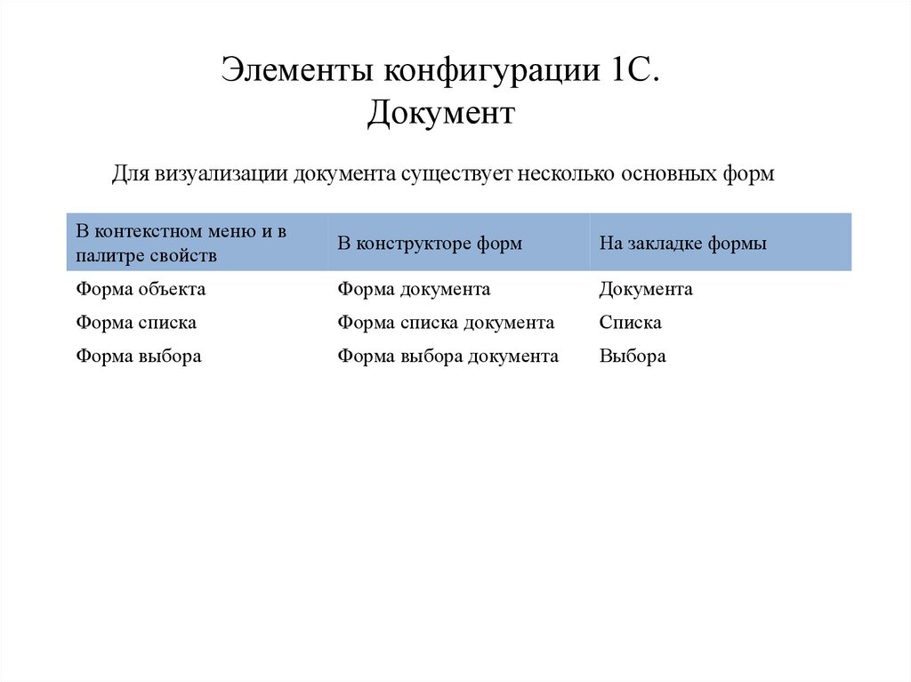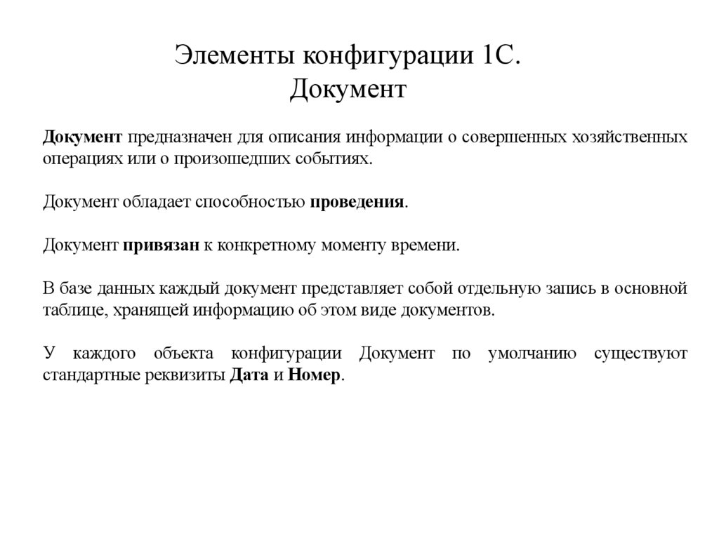 Элементы конфигурации 1С.Документ