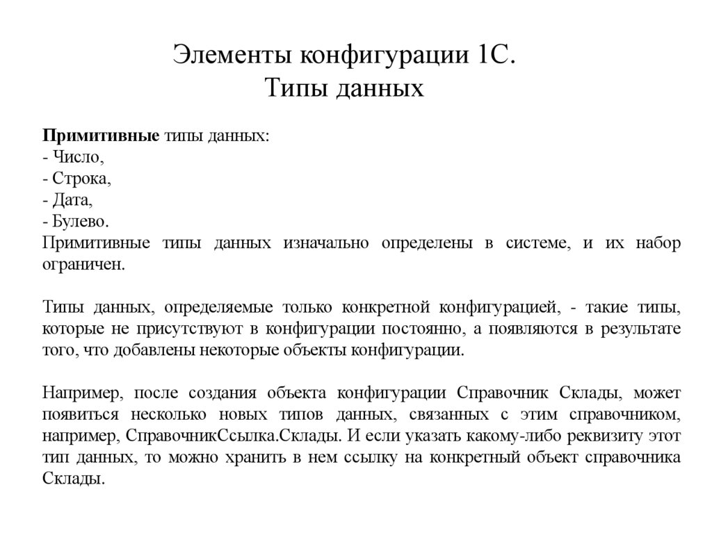 Элементы конфигурации 1С.Типы данных