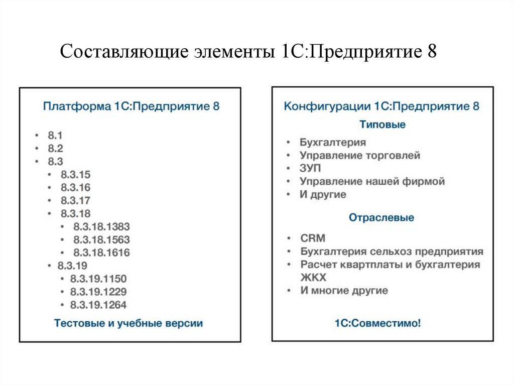 Составляющие элементы 1С:Предприятие 89.