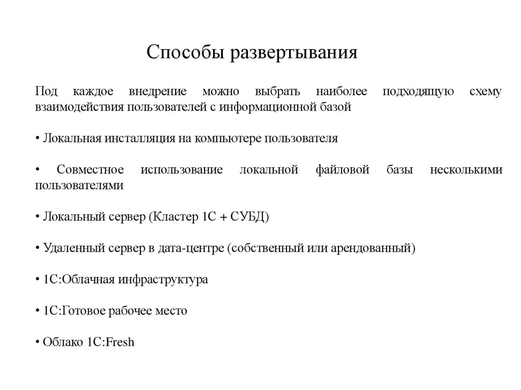 Способы развертыванияПод каждое внедрение можно выбрать наиболее