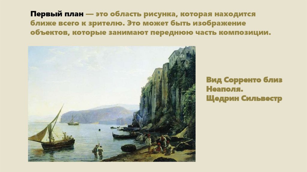 Первый план — это область рисунка, которая находитсяближе всего к зрителю. Это может быть изображение