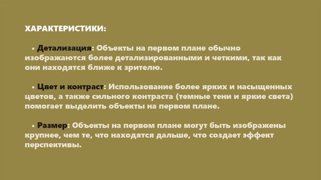 • Размер: Объекты на первом плане могут быть изображены