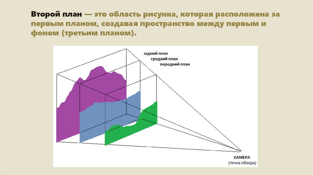 Второй план — это область рисунка, которая расположена запервым планом, создавая пространство между первым и