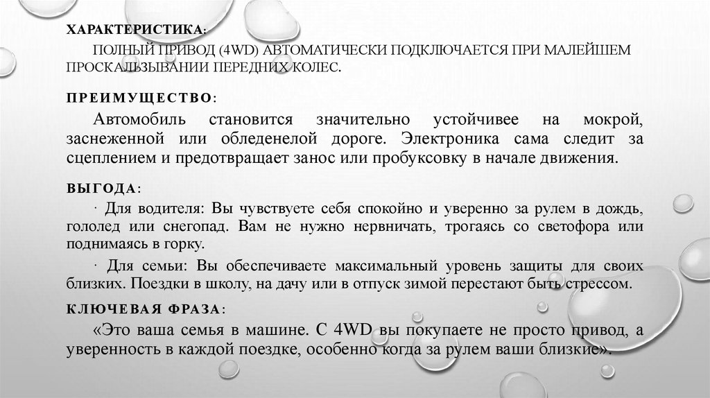 4. Предложите тест-драйв в условиях, где 4WD раскроется: Попросите клиента резко