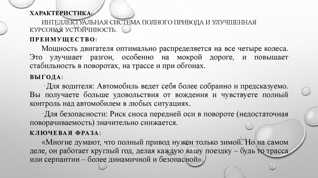 ХАРАКТЕРИСТИКА:ИНТЕЛЛЕКТУАЛЬНАЯ СИСТЕМА ПОЛНОГО ПРИВОДА И УЛУЧШЕННАЯ