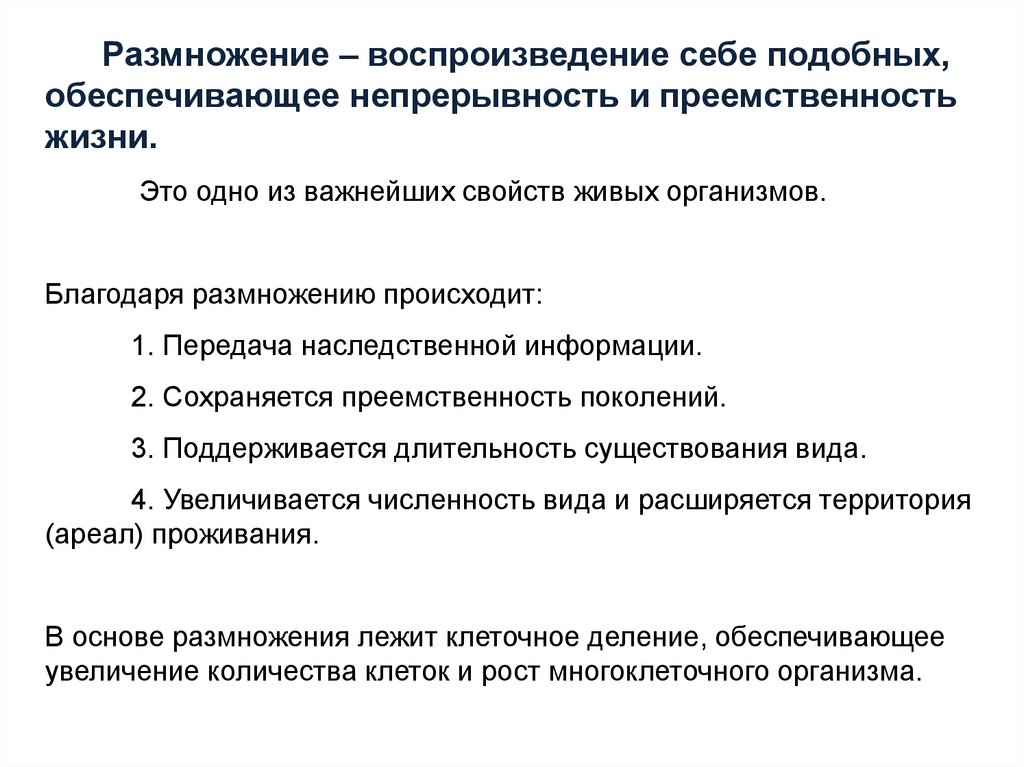 Размножение – воспроизведение себе подобных,обеспечивающее непрерывность и преемственность