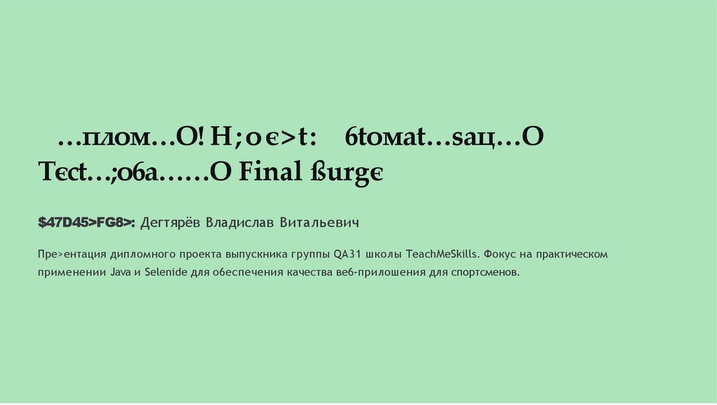Пре>ентация дипломного проекта выпускника группы QA31 школы TeachMeSkills. Фокус на практическом