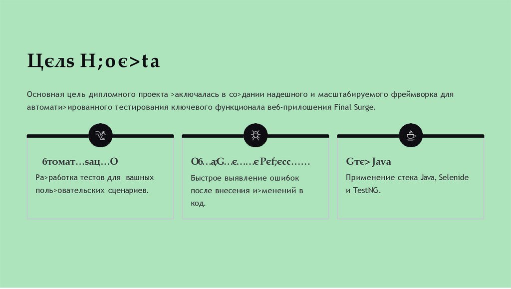 Цєлѕ H;oє>taОсновная цель дипломного проекта >аключалась в со>дании надешного и масшта6ируемого фреймворка для