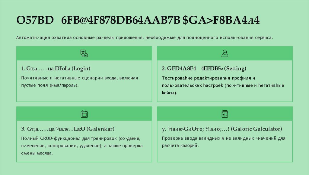O57BD 6FB@4F878DB64AAB7B $GA>F8BA4л4Автомати>ация охватила основные ра>делы прилошения, нео6ходимые для полноценного исполь>ования сервиса.
