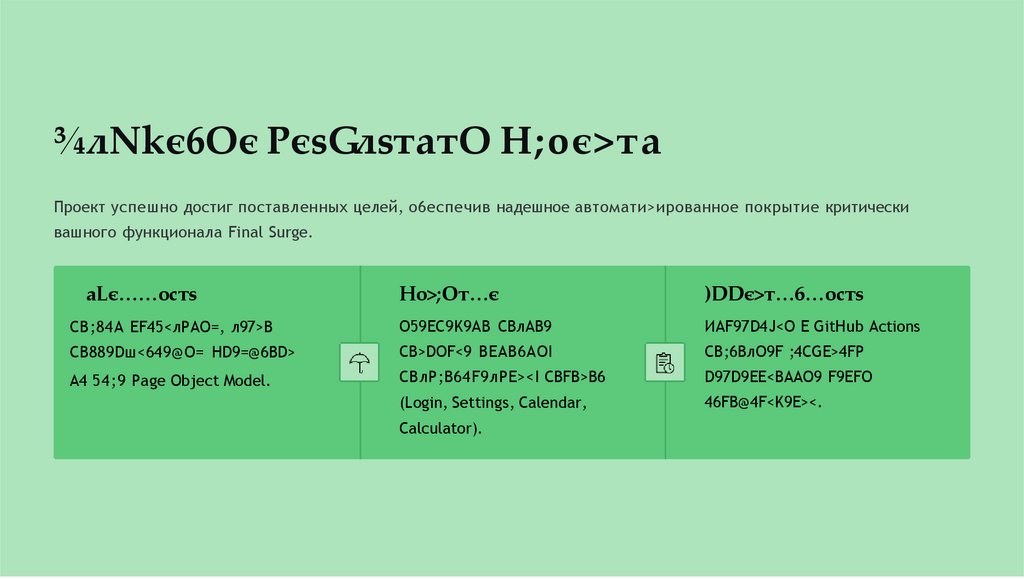 ¾лNkє6Oє РєѕGлѕтатO H;oє>таПроект успешно достиг поставленных целей, о6еспечив надешное автомати>ированное покрытие критически