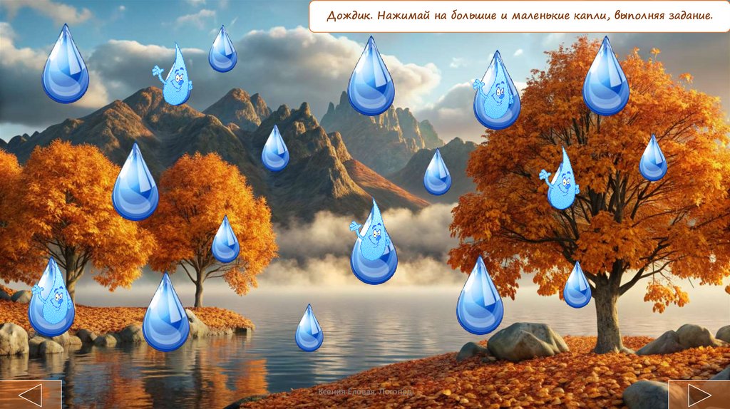 Дождик. Нажимай на большие и маленькие капли, выполняя задание.Ксения Еловая. Логопед