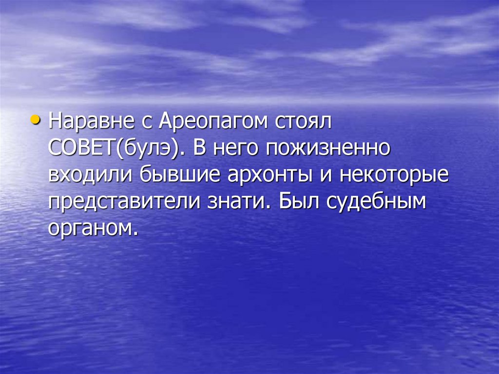 • Наравне с Ареопагом стоялСОВЕТ(булэ). В него пожизненно