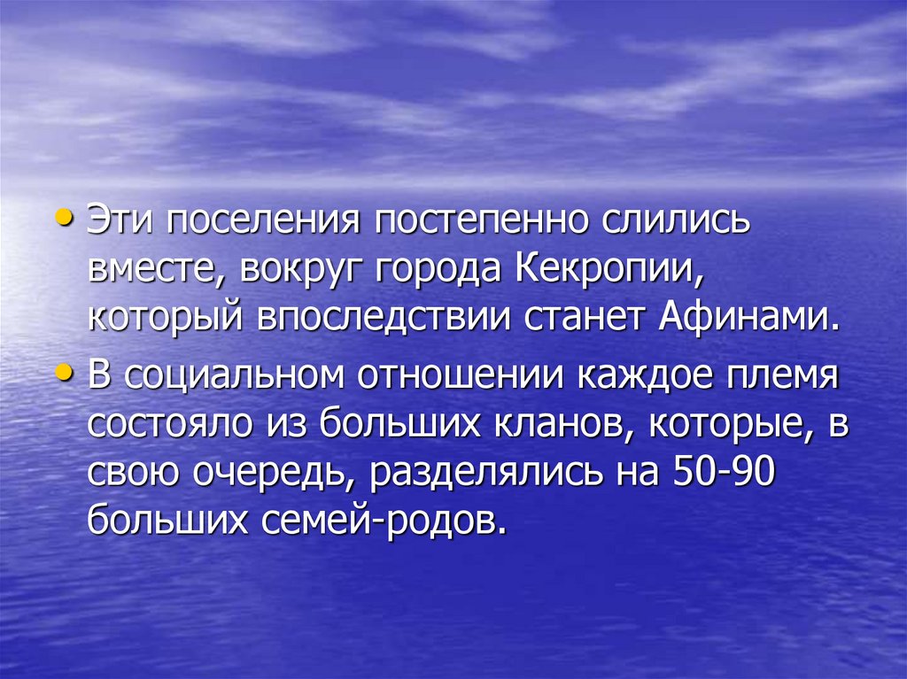 • Эти поселения постепенно слилисьвместе, вокруг города Кекропии,