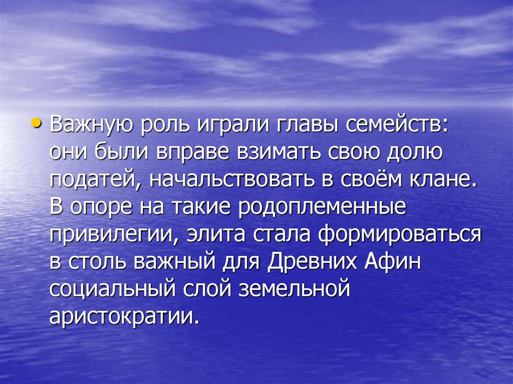 • Важную роль играли главы семейств:они были вправе взимать свою долю