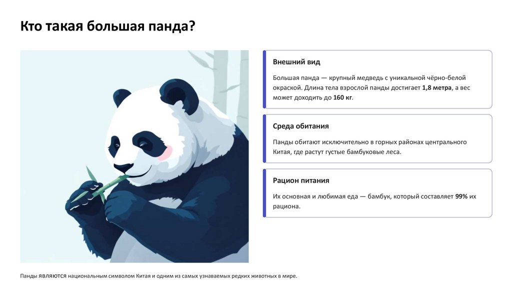 Большая панда — крупный медведь с уникальной чёрно-белой