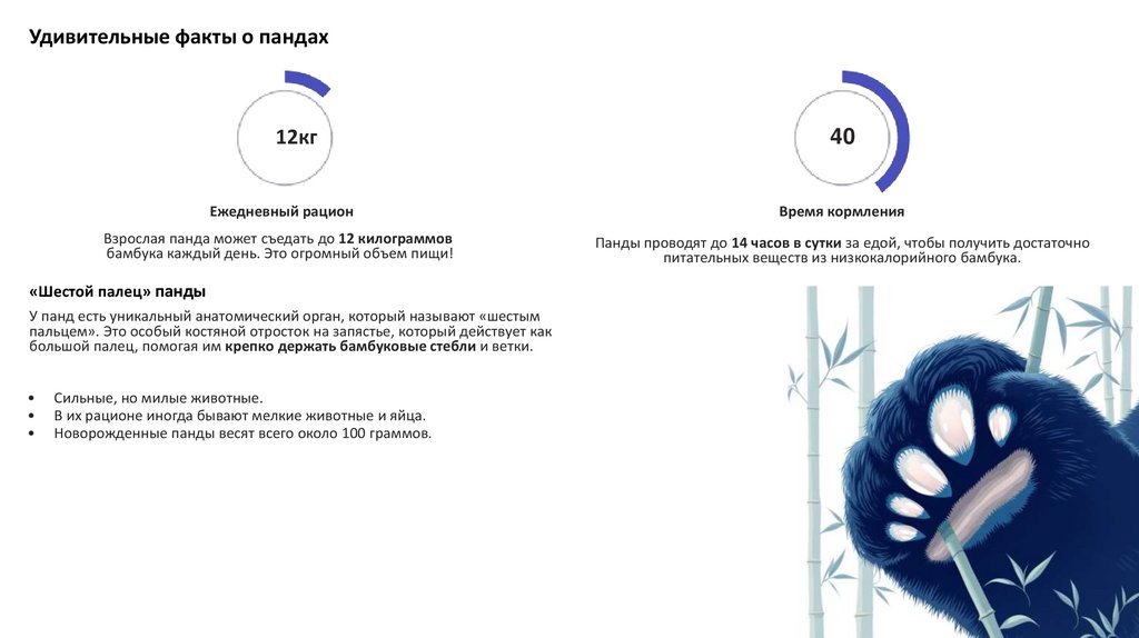 окраской. Длина тела взрослой панды достигает 1,8 метра, а вес