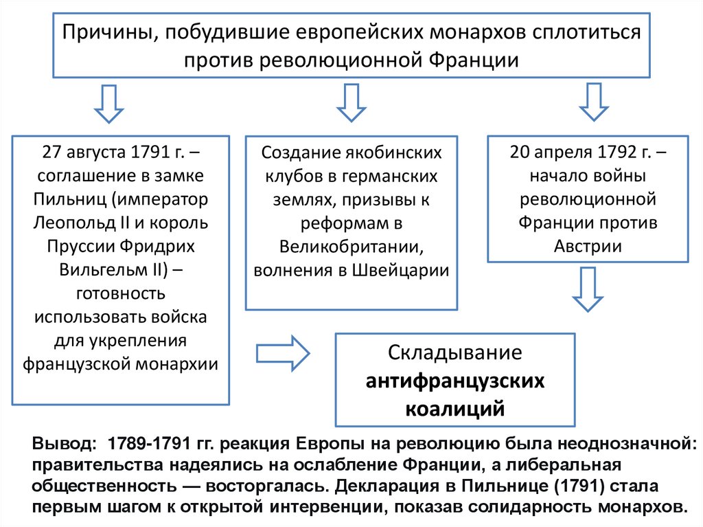 Причины, побудившие европейских монархов сплотитьсяпротив революционной Франции