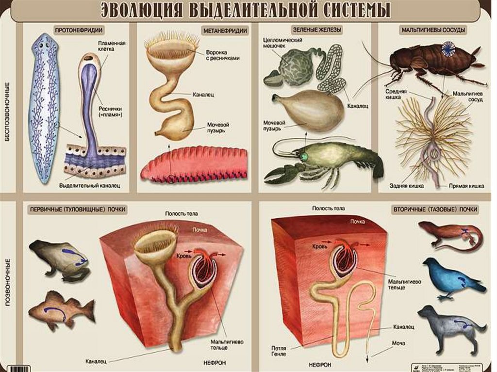 Эволюция почки как органа довольно сложна и разнообразна дляразных групп животных. По месту закладки почки выделяют головную
