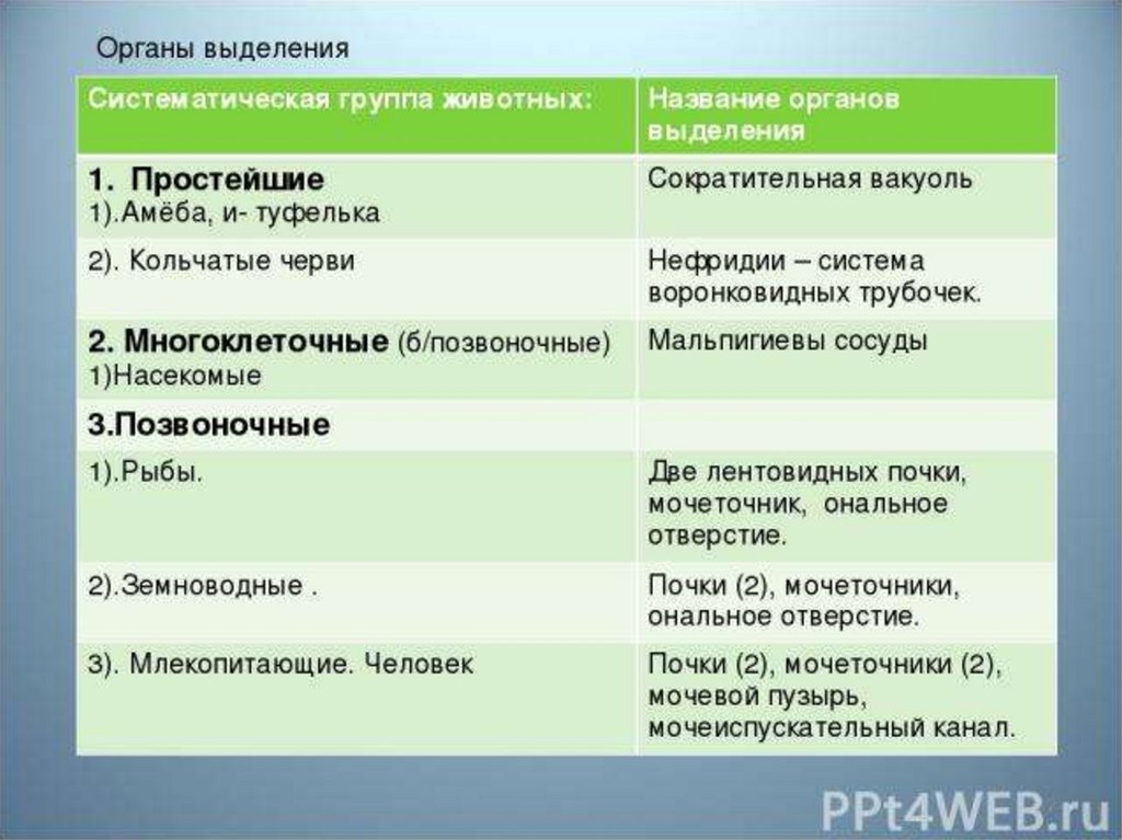 Тема урока•Выделительная система животных