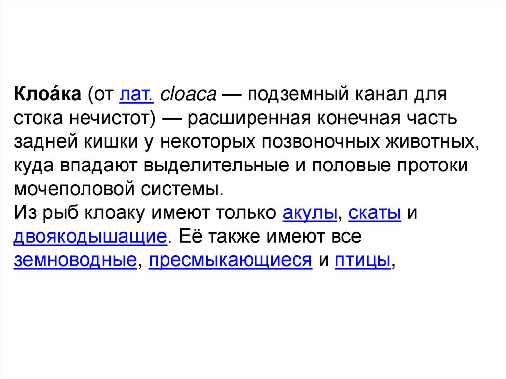 Клоа́ка (от лат. cloaca — подземный канал длястока нечистот) — расширенная конечная часть