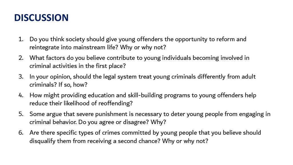 DISCUSSION1. Do you think society should give young offenders the opportunity to reform and