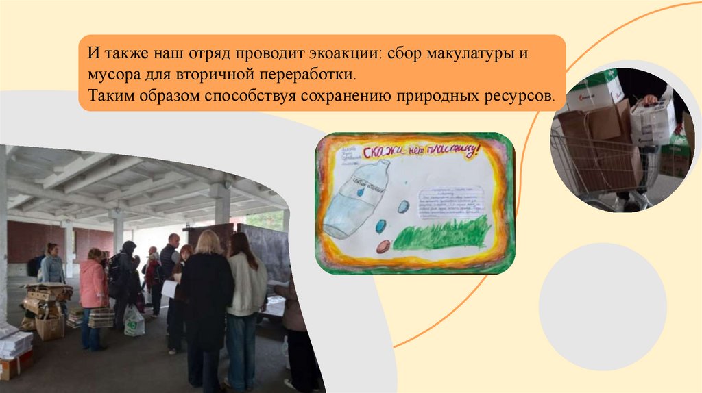 И также наш отряд проводит экоакции: сбор макулатуры имусора для вторичной переработки.