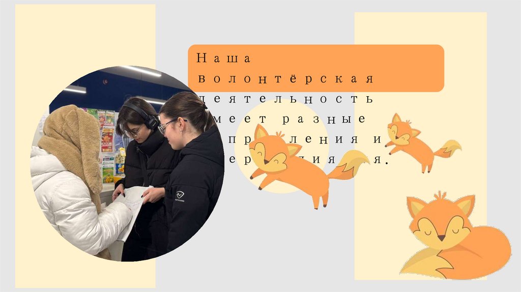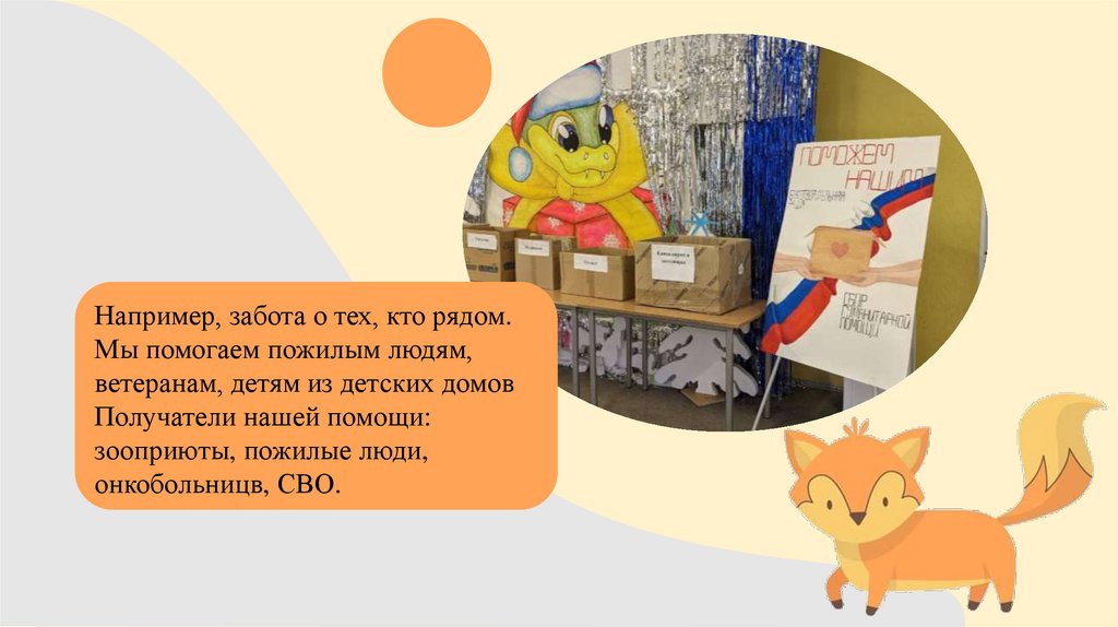 Например, забота о тех, кто рядом.Мы помогаем пожилым людям,