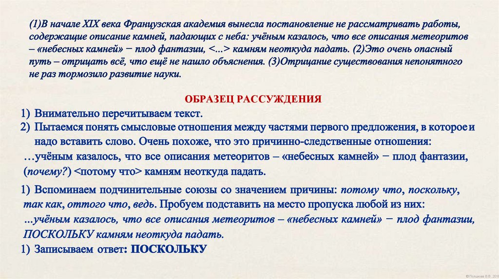 ОБРАЗЕЦ РАССУЖДЕНИЯ© Полшкова В.В., 2018