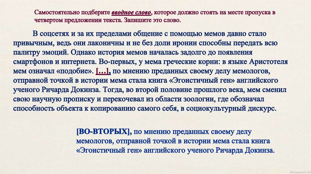 ВВОДНЫЕ СЛОВА© Полшкова В.В., 2018