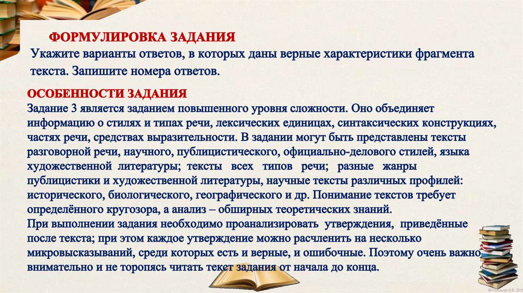 ДЛЯ ПРАВИЛЬНОГО ВЫПОЛНЕНИЯЗАДАНИЙ ДАННОГО ТИПА