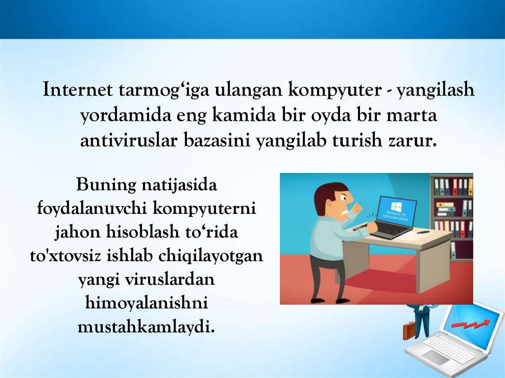 Internet tarmog‘iga ulangan kompyuter - yangilashyordamida eng kamida bir oyda bir marta