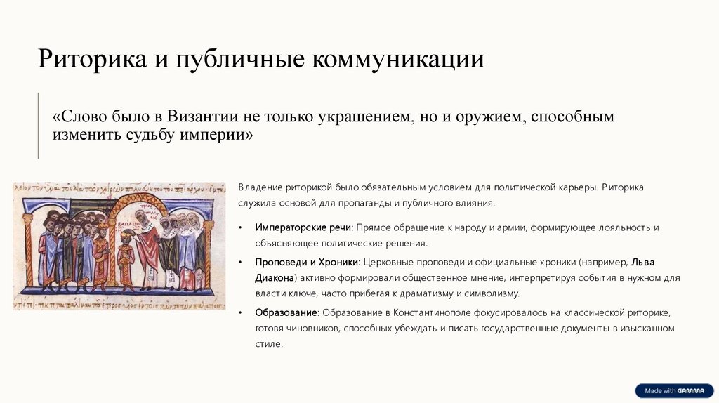 Риторика и публичные коммуникации«Слово было в Византии не только украшением, но и оружием, способным