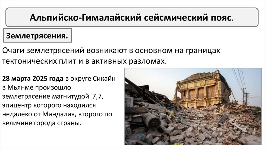 Альпийско-Гималайский сейсмический пояс.Землетрясения.