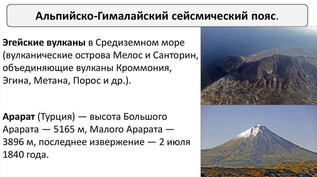 Альпийско-Гималайский сейсмический пояс.Эгейские вулканы в Средиземном море