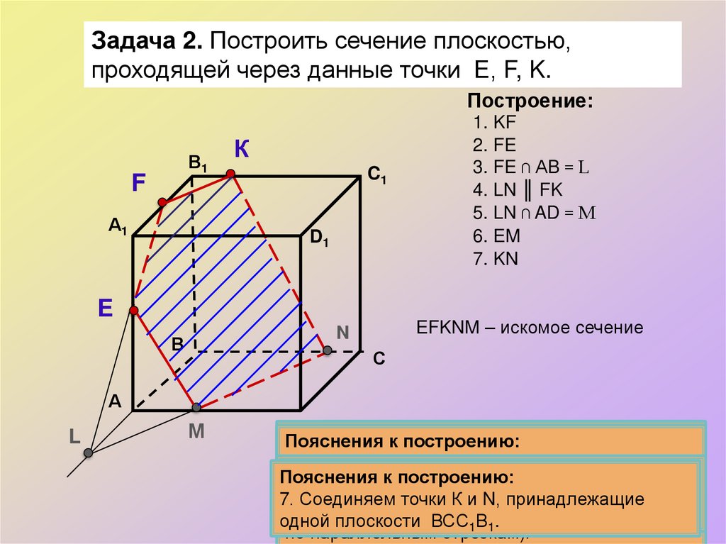 Задача 2. Построить сечение плоскостью,проходящей через данные точки Е, F, K.