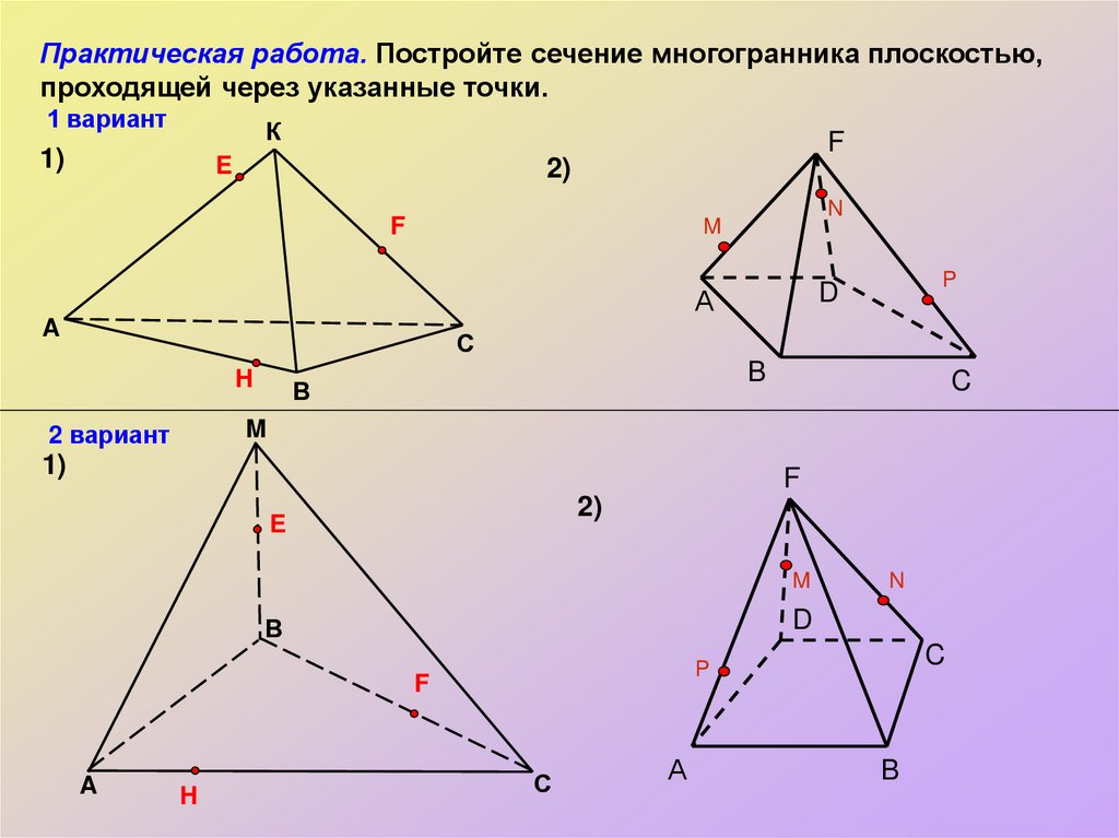 Практическая работа. Постройте сечение многогранника плоскостью,проходящей через указанные точки.