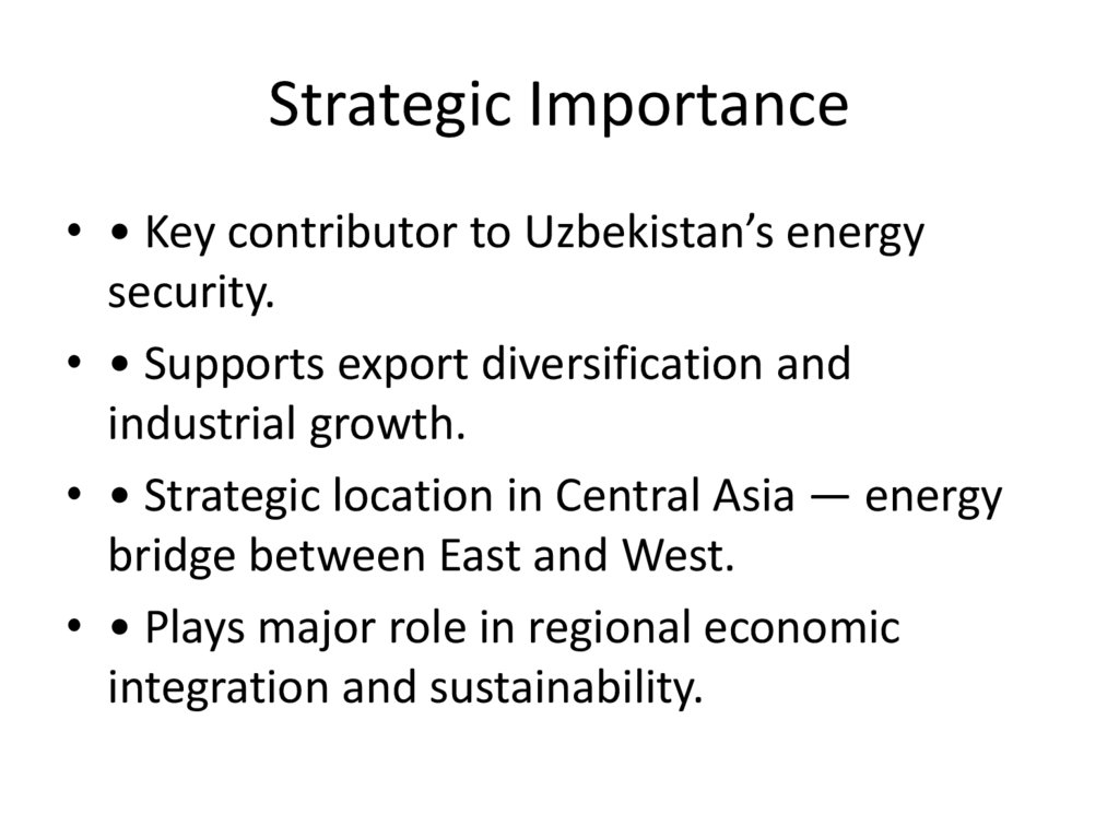 Strategic Importance• • Key contributor to Uzbekistan’s energy