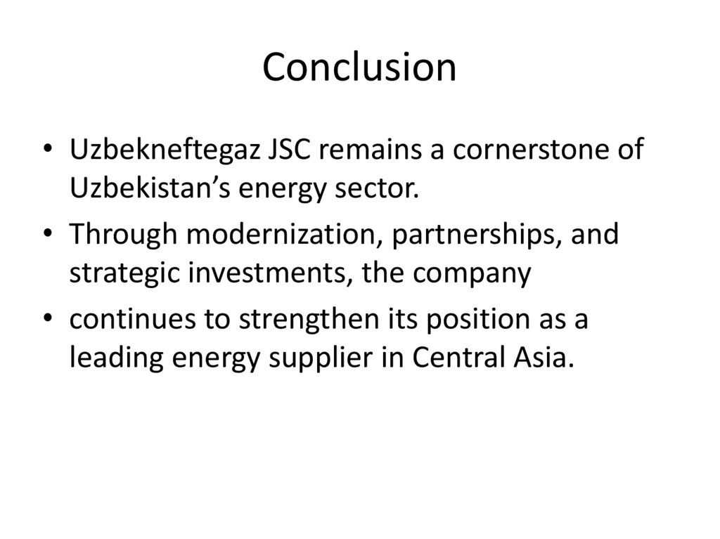 Conclusion• Uzbekneftegaz JSC remains a cornerstone of