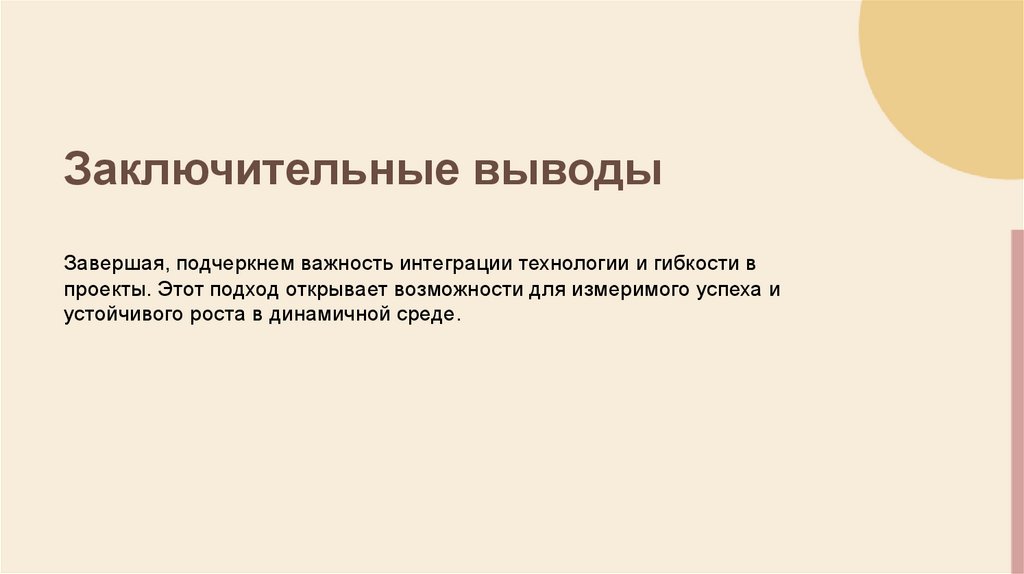 Заключительные выводыЗавершая, подчеркнем важность интеграции технологии и гибкости в