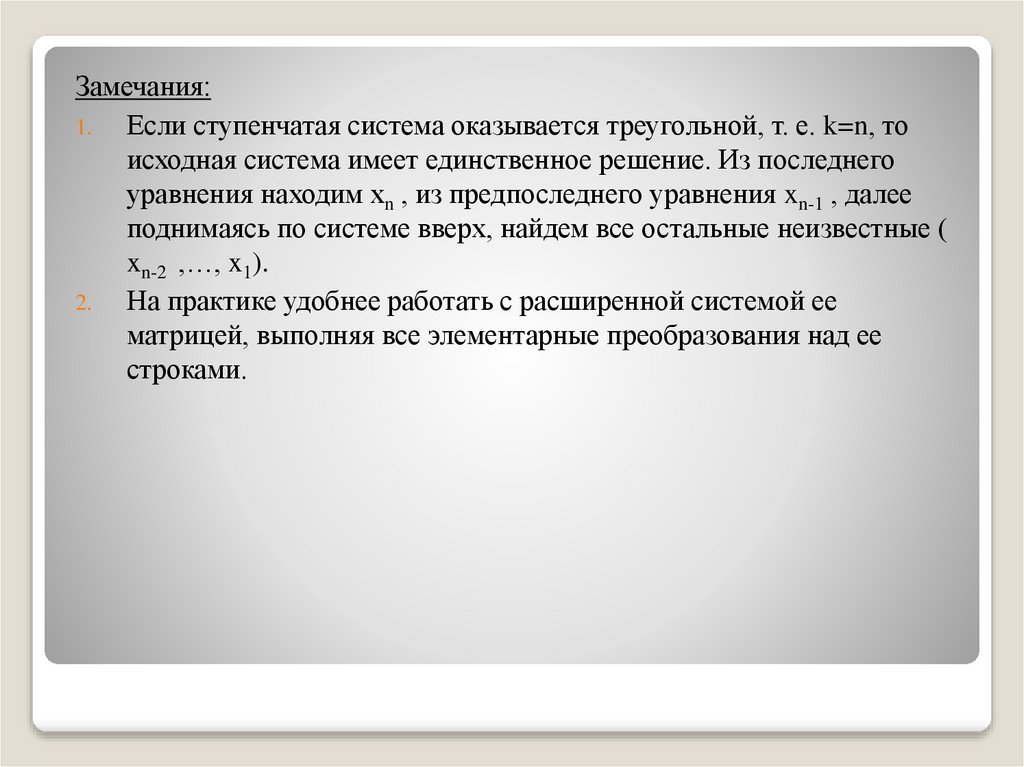Если ступенчатая система оказывается треугольной, т. е. k=n, то