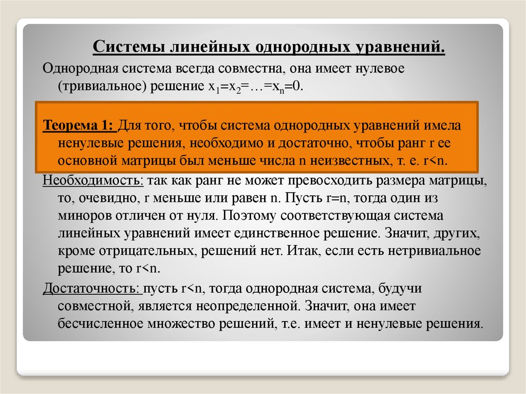 Теорема 1: Для того, чтобы система однородных уравнений имела