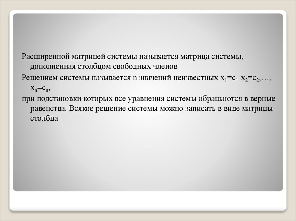 Решением системы называется n значений неизвестных х1=с1, х2=с2,…,