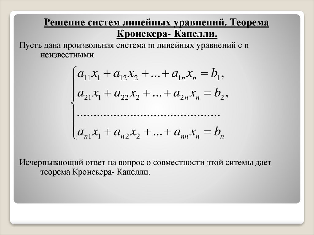 Решение систем линейных уравнений. ТеоремаКронекера- Капелли.