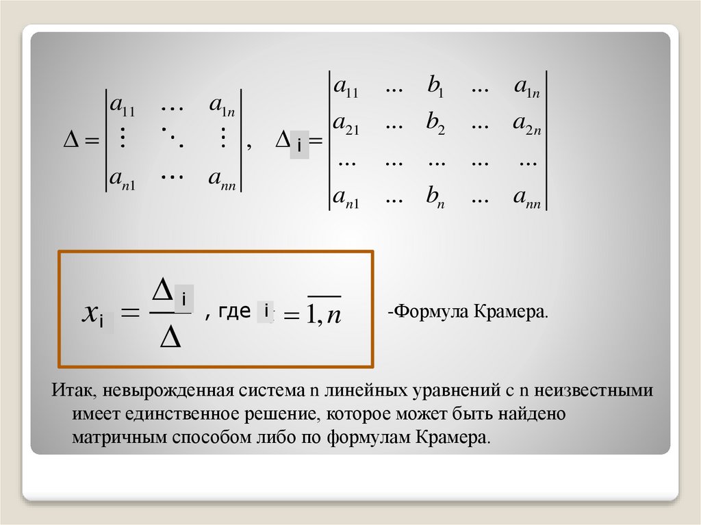 Итак, невырожденная система n линейных уравнений c n неизвестными