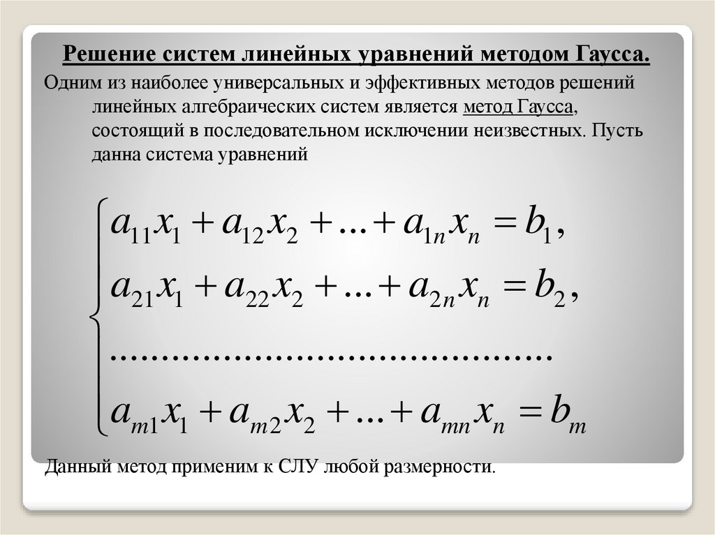 Решение систем линейных уравнений методом Гаусса.Одним из наиболее универсальных и эффективных методов решений